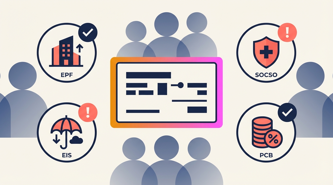 EPF. SOCSO. EIS. PCB. These four acronyms represent mandatory statutory contributions that every Malaysian employer must make — correctly and on time. Get them wrong and you face penalties, audits, and employee disputes.